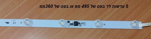 פס ברוחב 360 ממ בעל 5 עדשות לד כאשר כל עדשת לד 3 ואט. גם פס זה ייתן לנו עוצמת הארה של 15 ואט. אולם , במקרה של פח ברוחב 360 ממ, נרוויח צפיפות גדולה יותר למטר, ונוכל להתקין יותר עדשות לשטח קיים.